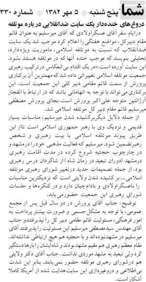 خبر پيك و توضيح موتلفه اسلامی،