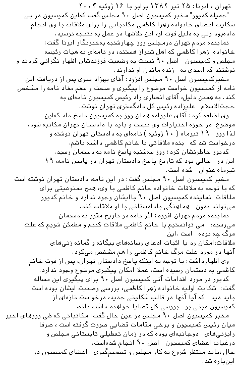 جميله كديور مخبر كميسيون اصل نود مجلس خبر داد