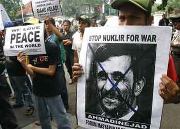 تظاهرات ضدجنگ عليه محمود احمدی نژاد در اندونزی"مونتاژ شده" و