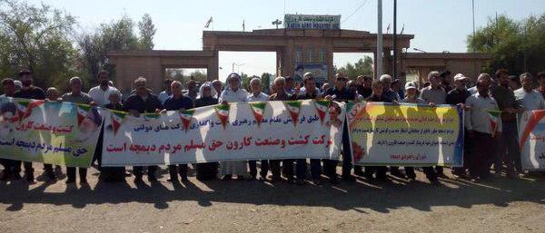 جمعی از اهالی منطقه دیمچه در شهرستان شوشتر، در اعتراض به