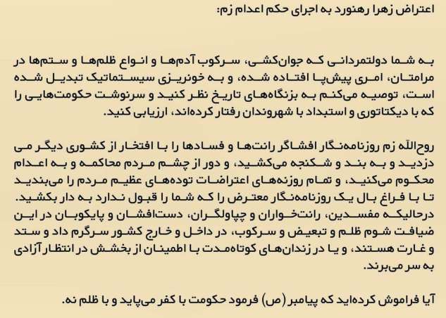 درباره اعدام "زم"