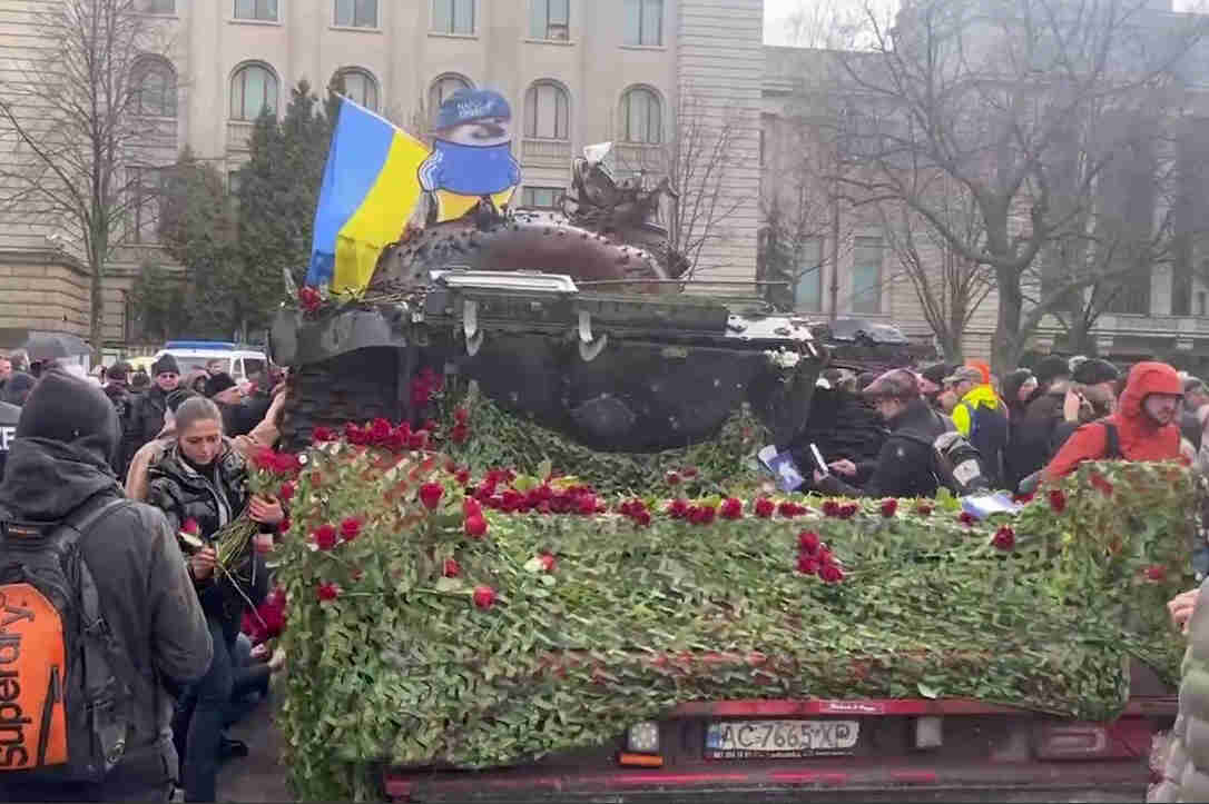 سیل جمعیت این تانک را گلباران کرد، آن مهاجرین اوکراینی صحنه